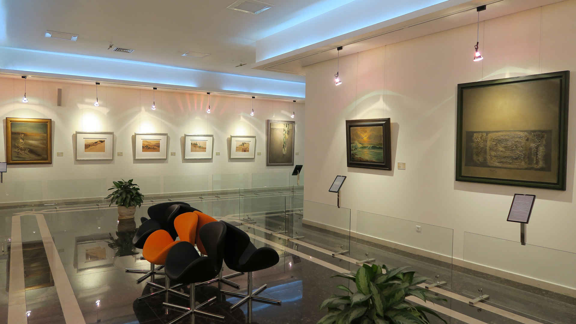 و اما "تالار نقاشی"، که پس از " تالار سکه " به زیبایی هرچه تمام جانمایی شده است، با تابلوهایی رنگارنگ و بهرهمند از تکنیکها و سبکهای متفاوت استادانی صاحب نام و هنرمندانی برجسته که شما را به آرامی از حال و هوای تاریخی مسکوکات خارج و به روزگار معاصر میرساند آن هم با حسی وصف ناشدنی. به عمق هر تابلو نقاشی که نگاه کنی تفکر خلاق و ذهن پویای هنرمندی را نظاره میکنی که از اوضاع پیرامون به چنان وحدت معنایی رسیده است که اثرش، حالت را خوب می کند. همانند برخی آثار سهراب سپهری که با تابلوهای آبرنگ زمینه نخودی خود، حس و حال گرمی کاشان را القا میکند و از طرفی رنگ سبز و پر نشاط درختان، که کوچه باغهای محل را تداعی و تعلق خاطرش را به آن مکان در ذهن بیننده می آفریند.