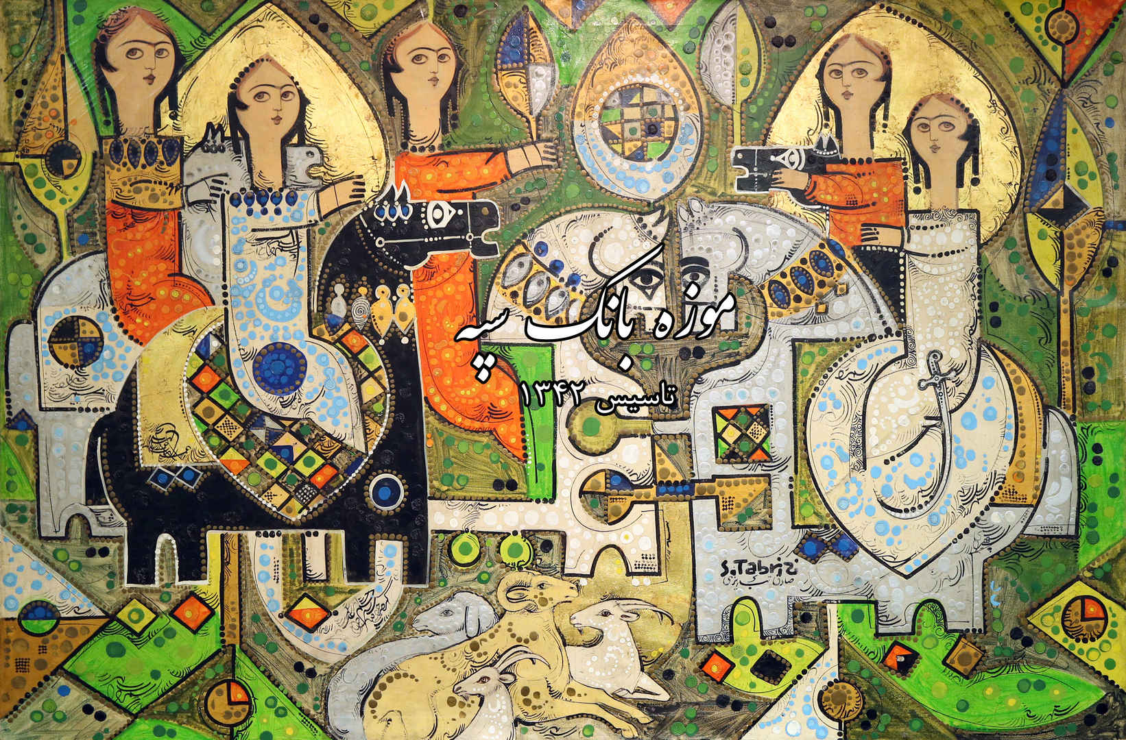 و یا تابلوهای بی نهایت زنده صادق تبریزی، که سبک سقاخانه را با اساطیر عاشقانه ایرانی همراه با رنگهای زنده و شاد تلفیق کرده بود. در واقع سبک سوررئالیسم با تم مذهبی و عاشقانه با رنگهای تند در تابلوهایش متبلور است. گویی همین الان با پرویز تناولی درحال قدم زدن در خیابانهای اطراف بارگاه حضرت شاه عبدالعظیم(ع) است که با پوسترهای مذهبی پر رنگ و لعاب روبرو میشوند و باهم تصمیم میگیرند در سبک سوررئالیسم از رنگهای تند همراه با تم مذهبی استفاده کنند و نام آن را هم سبک سقاخانهای بگذارند. البته که تبریزی با اساطیر عاشقانه ایرانی نیز تصاویر را همراه میکند،